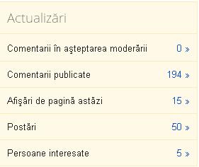 De pe 5 mai am adunat 195 de comentarii. Recordul de vizitatori a fost de 70, iar acum am o medie pe zi de 37.4 persoane. Nu sunt mulți, dar sunt activi majoritatea.